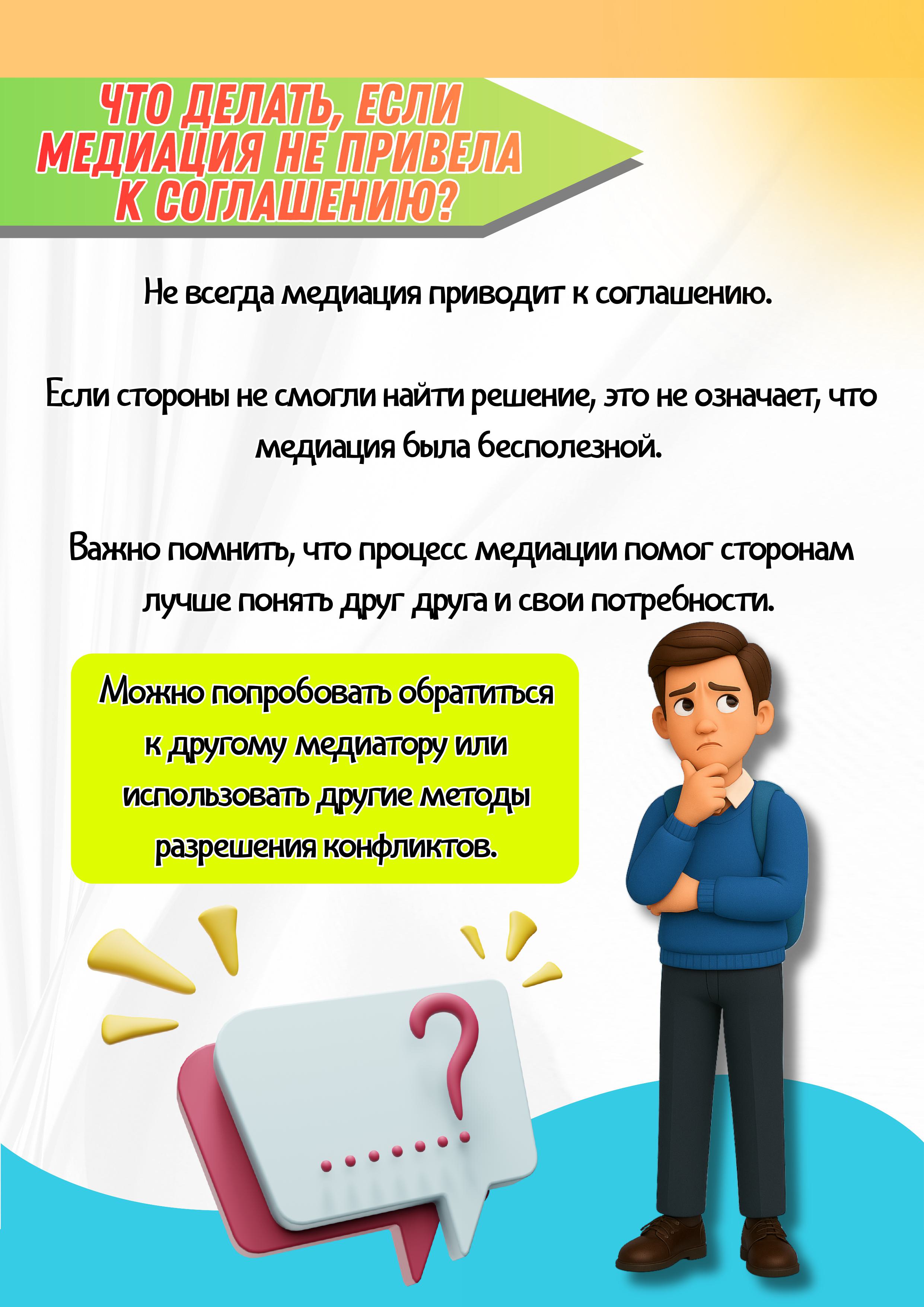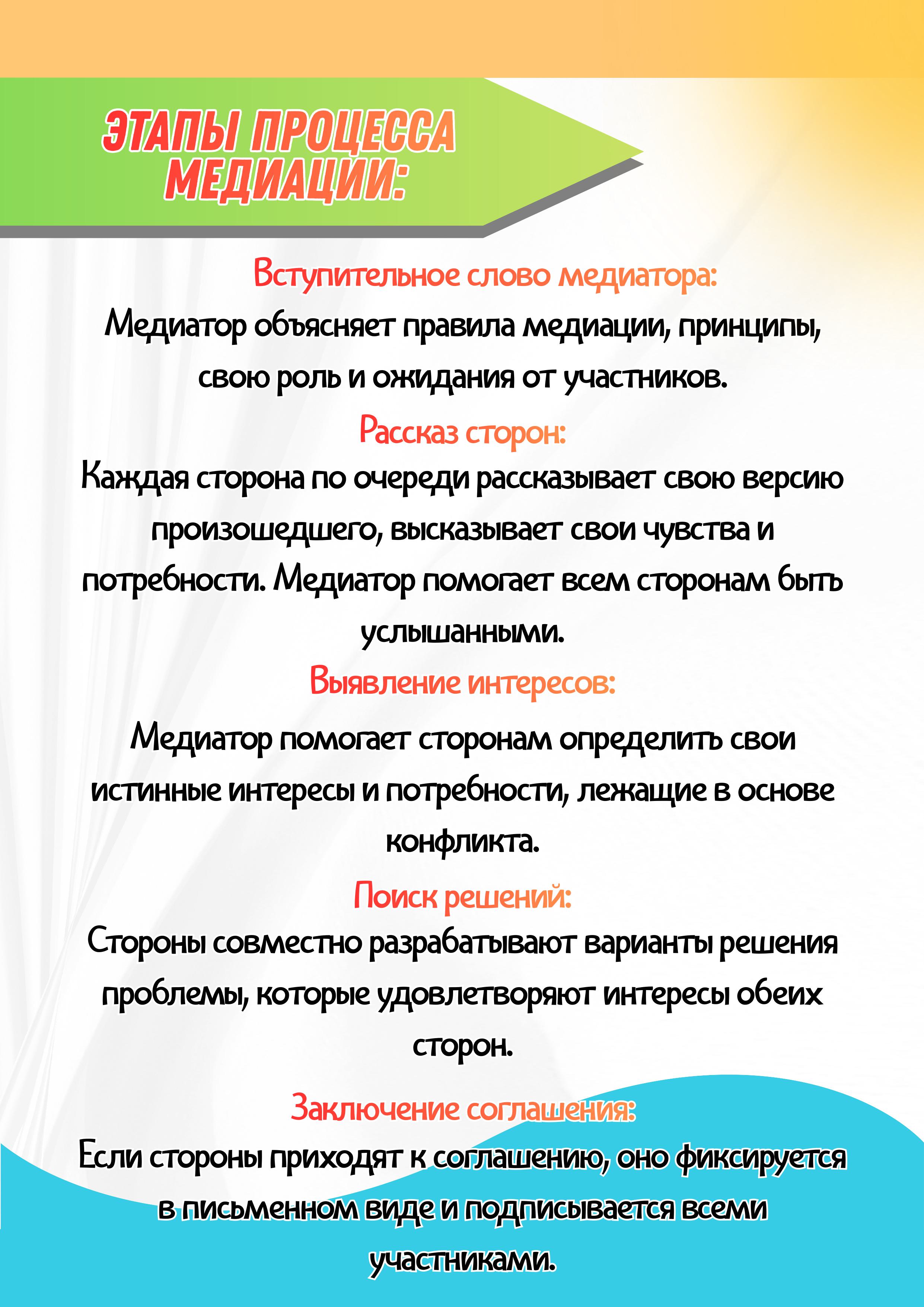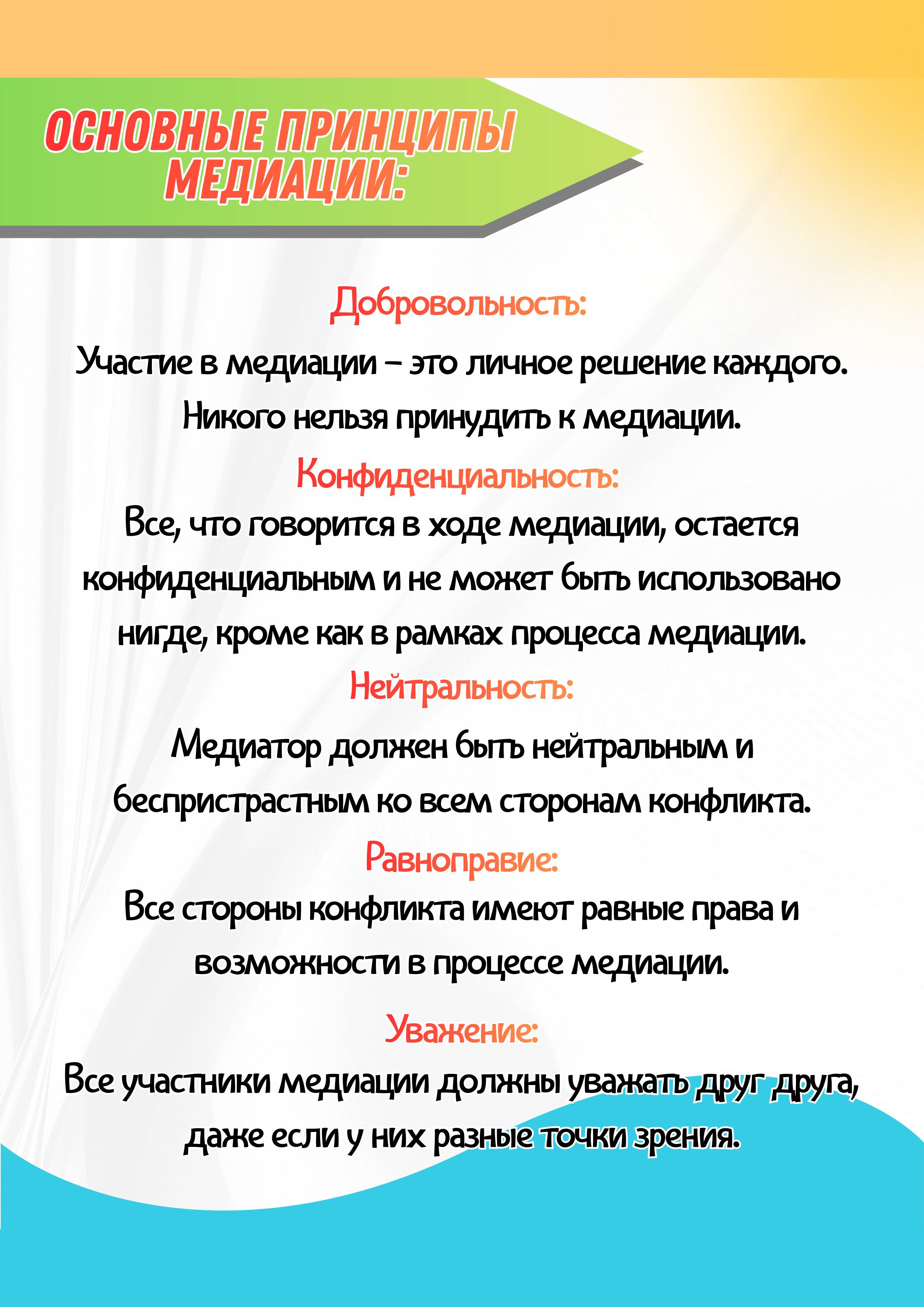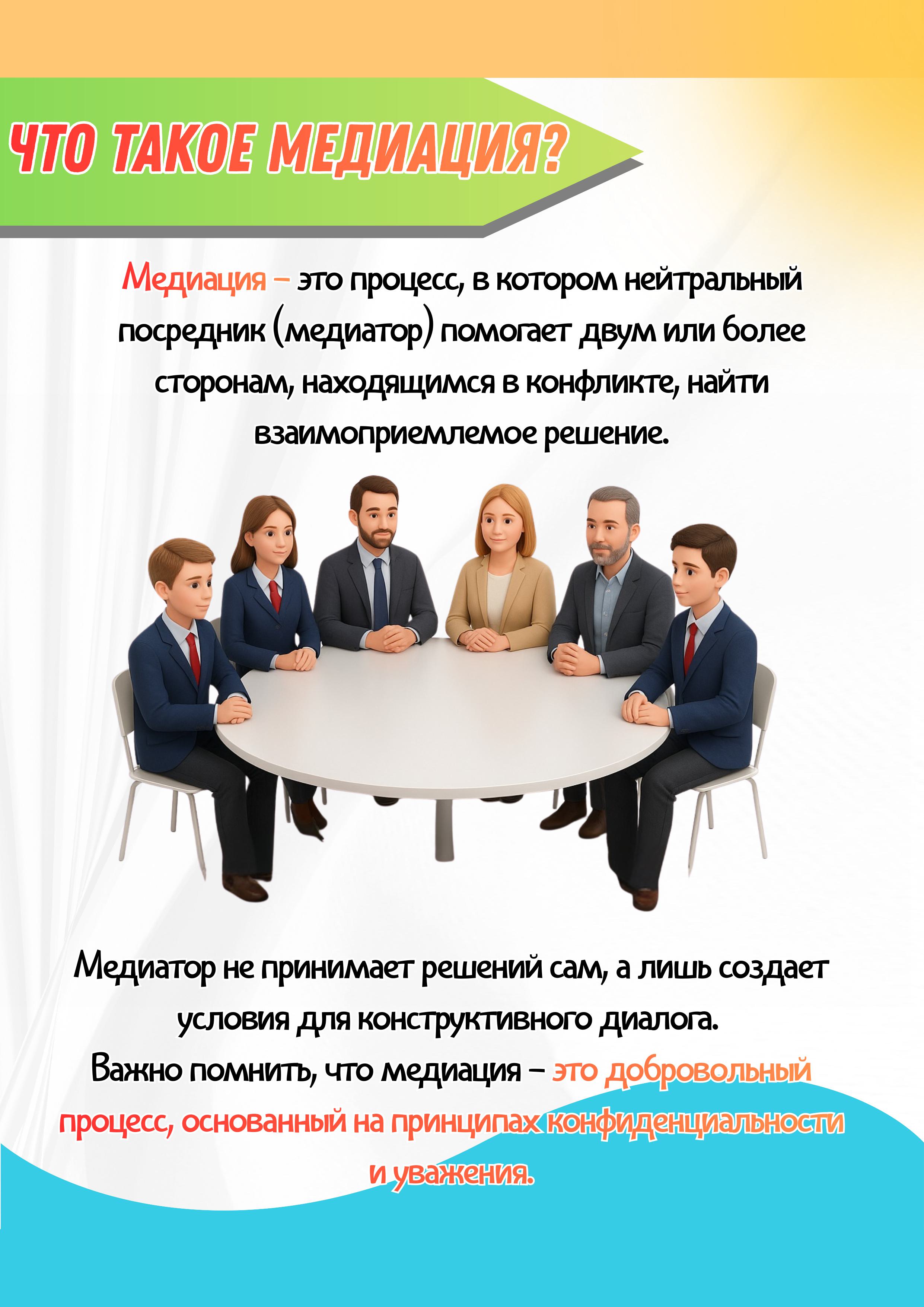 Медиатор предоставит Вам всю необходимую информацию о сути медиации, ее процессе и правах участников медиации.