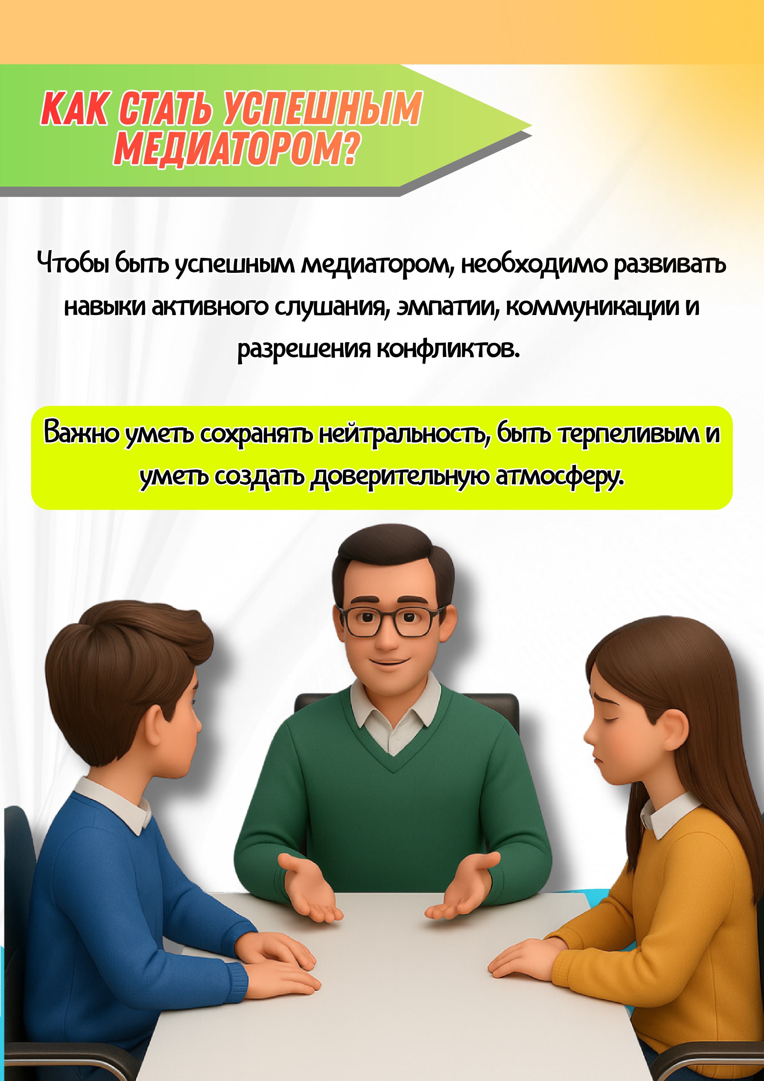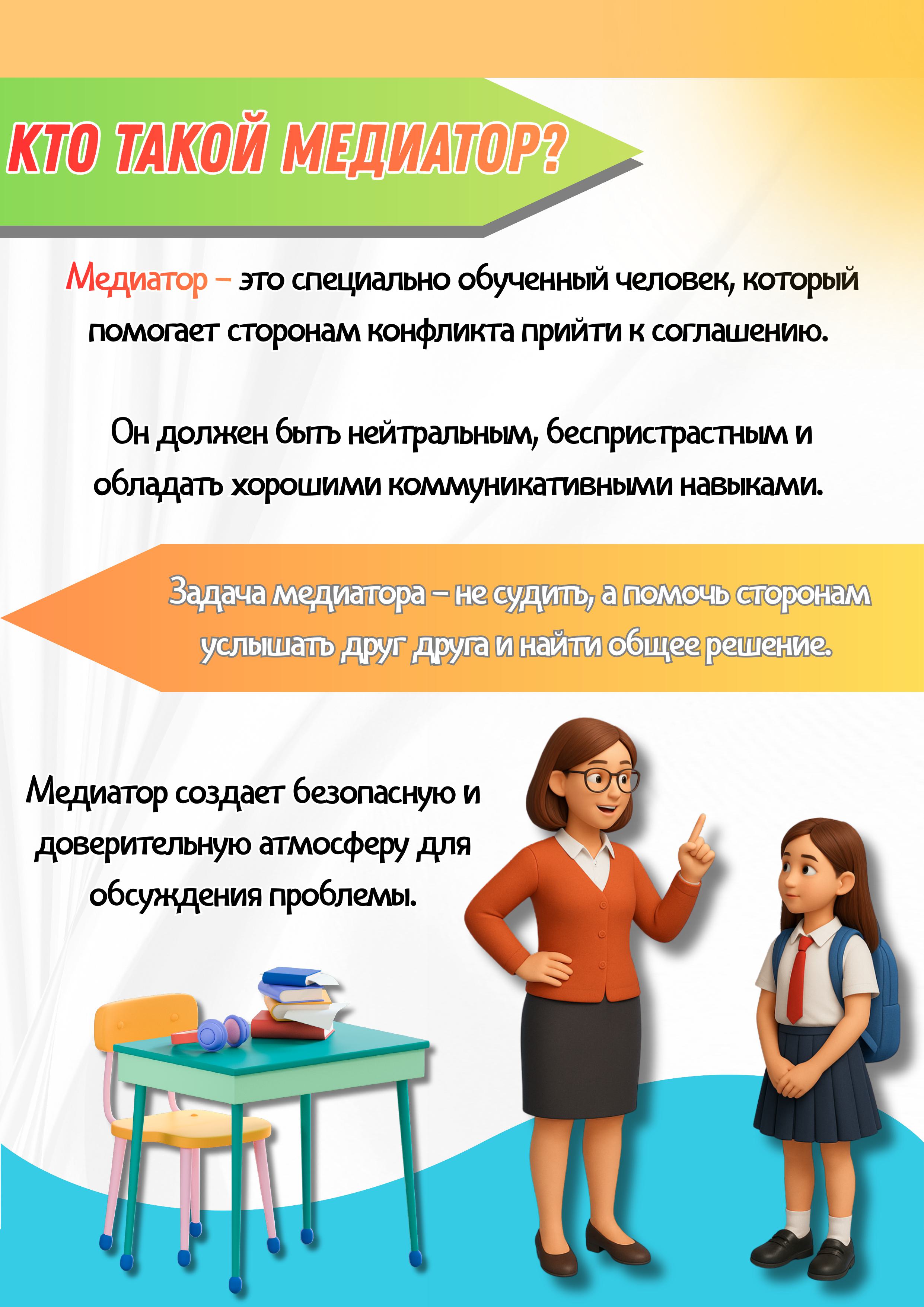 Медиатор будет только ПОМОГАТЬ конфликтующим сторонам договориться и прийти к взаимовыгодному решению.
