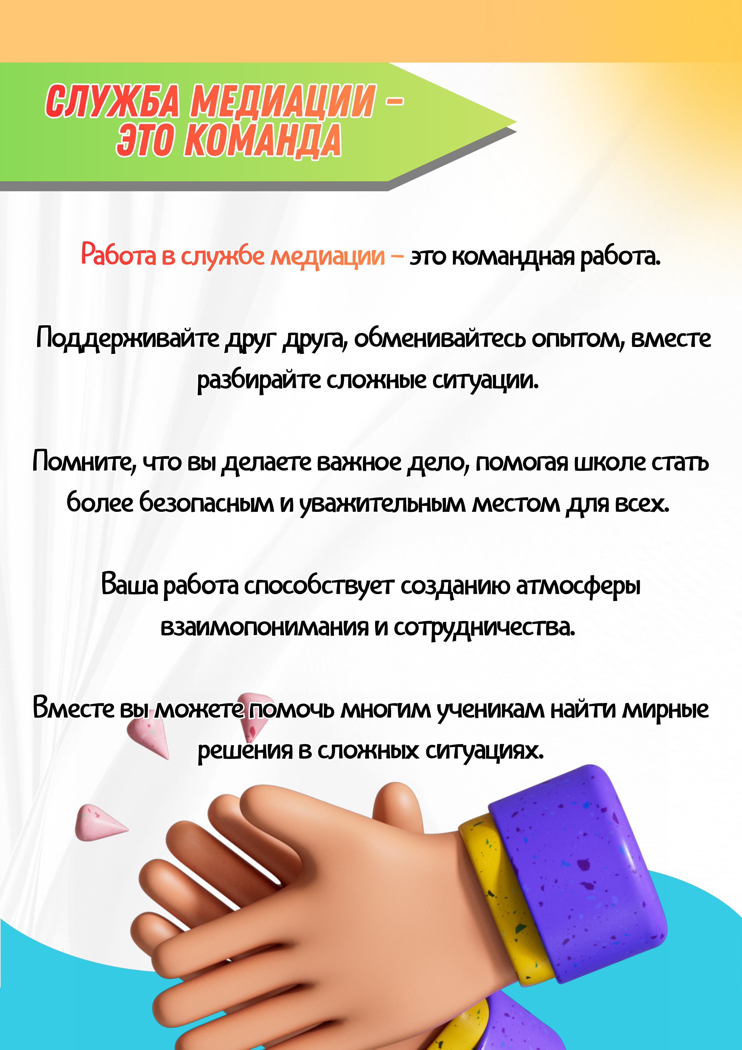 ГОТОВЫ ПРИЙТИ НА ПОМОЩЬ ЧЛЕНЫ СЛУЖБЫ МЕДИАЦИИ НАШЕЙ ШКОЛЫ